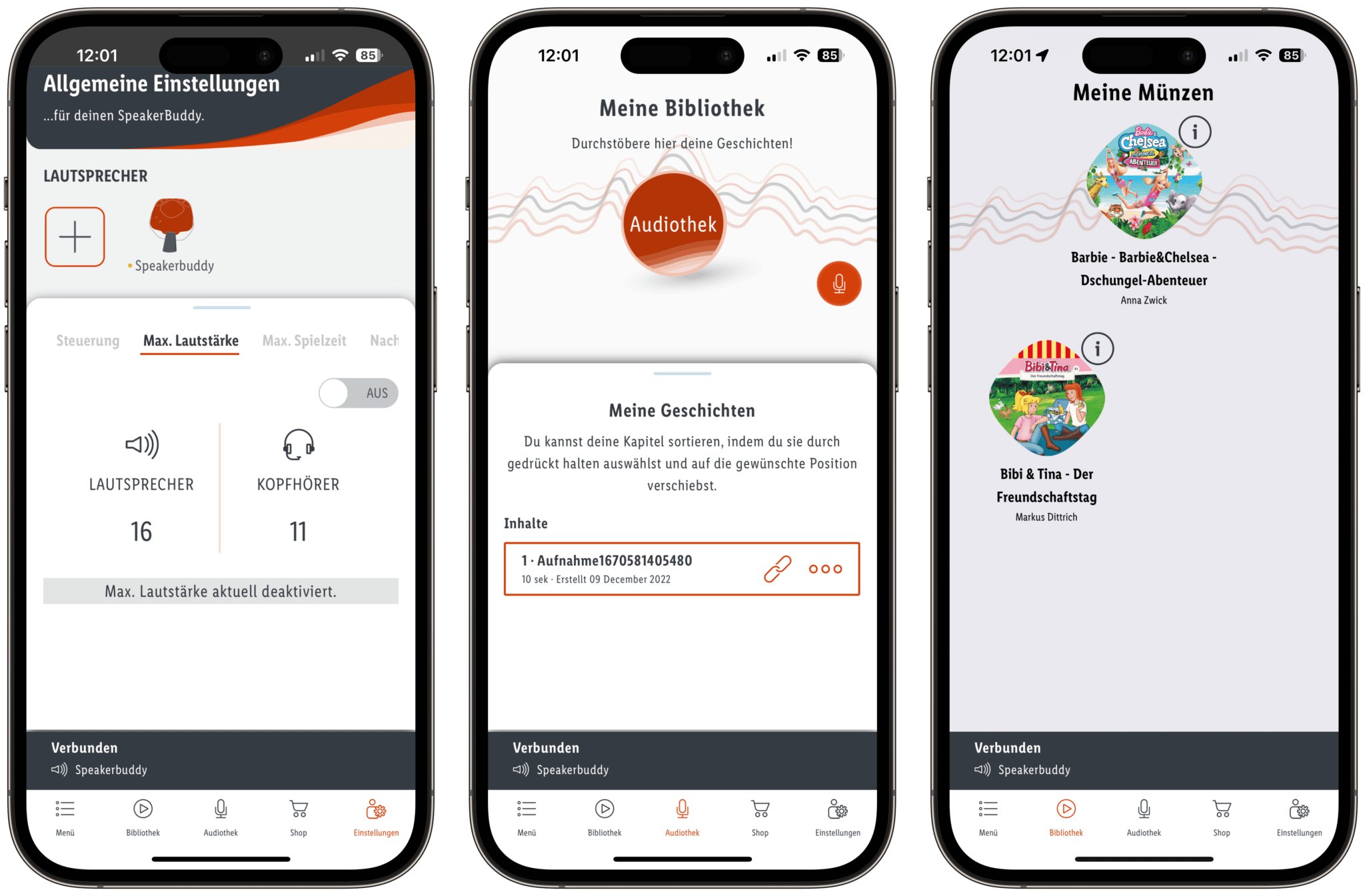Während im Online-Shop der Toniebox mittlerweile über 300 Figuren gelistet werden und man viele davon in der Audiothek kostenpflichtig mit alternativen Geschichten bespielen kann, ist die Auswahl beim SpeakerBuddy deutlich geringer. Aktuell listet Lidl in seinem Online-Shop rund 40 Münzen.