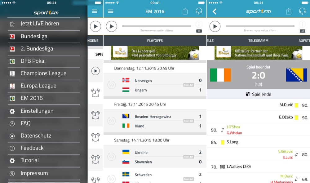 Die Sport1 GmbH hat nicht nur das Audio-Rechtepaket von der UEFA sondern auch die audiovisuelle Highlight-Rechte für Online und Mobile erworben. Somit werden alle 51 Spiele der Europameisterschaft live im Radio Sport1.fm (App Store-Link) übertragen. Der Abruf via Sport1.fm-App ist schon vorbereitet, alle Spiele lassen sich einzeln abrufen, am letzten Gruppen-Spieltag können Hörer die Konferenz aller Spiele live verfolgen.
