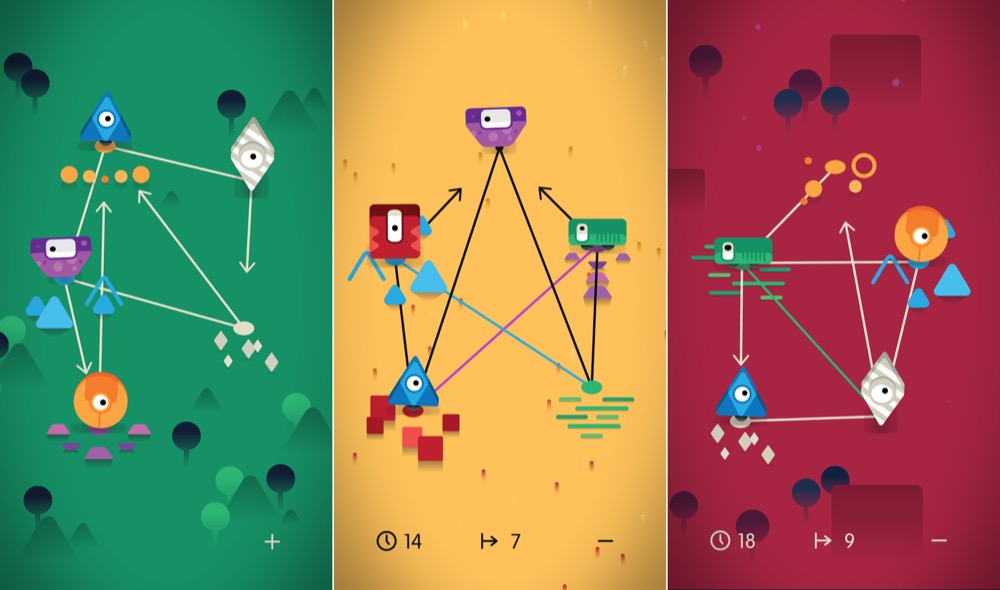Sputnik Eyes bietet ein neuartiges Spielprinzip, das mich ein wenig an die Schiebe-Puzzles von damals erinnert. Auf einer kleinen Karte mit Wegen müssen farbige Roboter zum passenden Endpunkt geschubst werden. Ein Level gilt dabei nur dann als erfolgreich absolviert, wenn alle Roboter die richtige Position erreicht haben. Um sie zu bewegen, reicht ein einfacher Fingertipp aus.