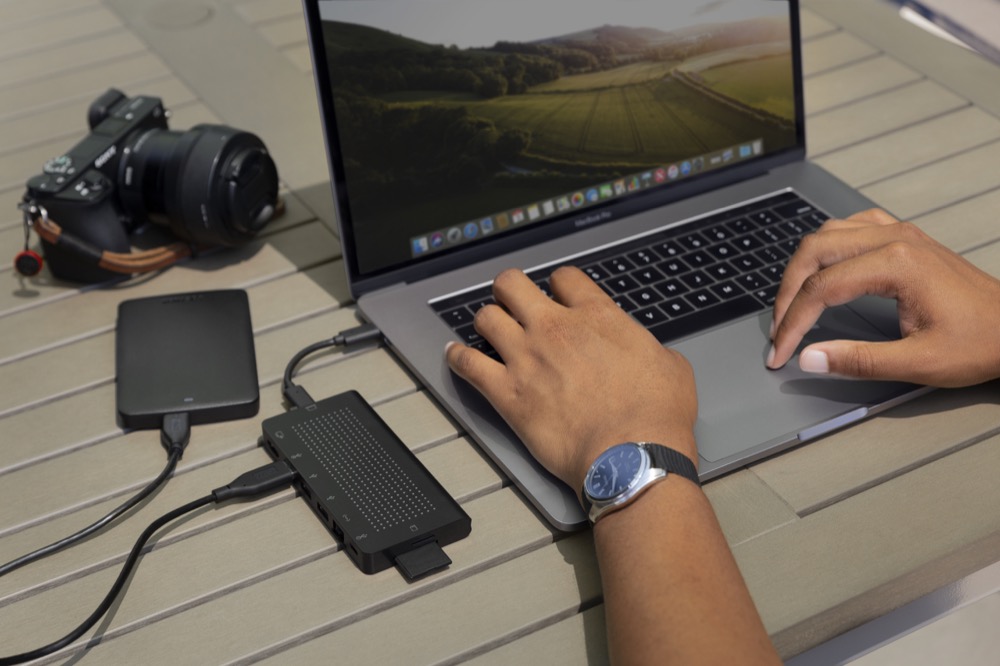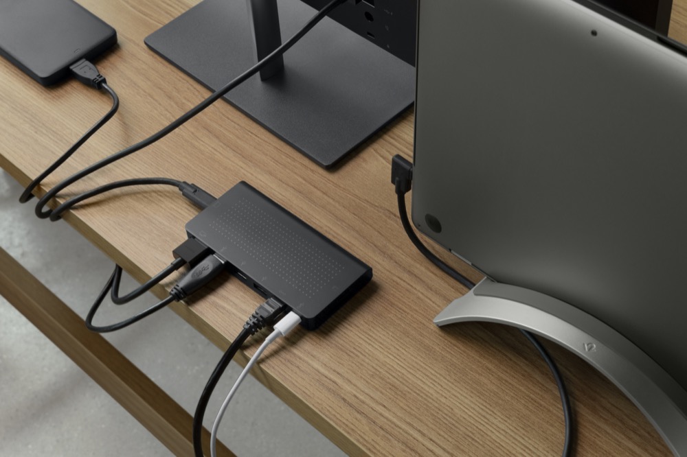 USB-C-Hubs im Preissegment von 20 bis 100 Euro werden normalerweise auf folgende Weise mit dem MacBook verbunden: Entweder sie haben Stecker und werden direkt an die Seite des MacBooks gesteckt oder die haben ein rund 10 Zentimeter langes Kabel und baumeln direkt neben dem MacBook.