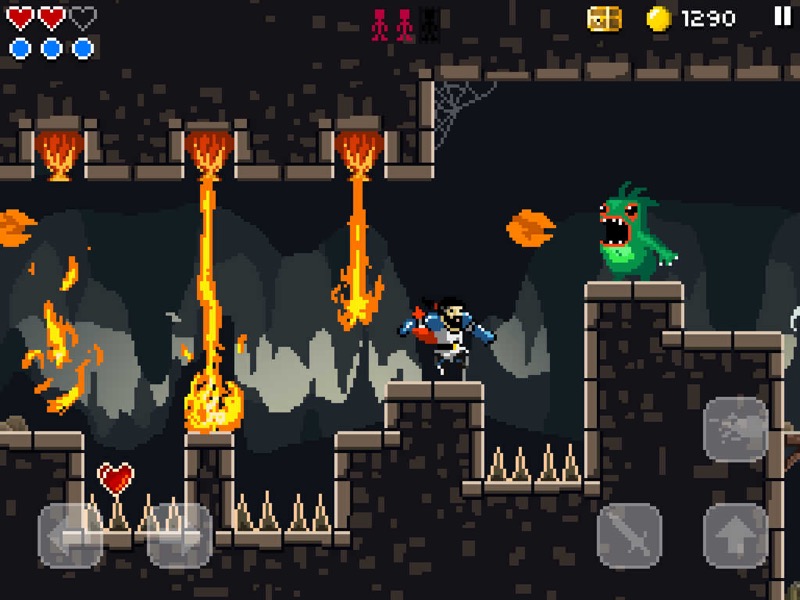In insgesamt 30 verschiedenen Leveln in einem Abenteuer-Modus heißt es nicht nur, sich mit Hilfe von virtuellen Buttons zum Laufen, Springen und Attackieren gegen Gegner durchzusetzen, sondern auch unterwegs Münzen und Feuertränke einzusammeln. Letztere führen eine Spezialaktion, einen kräftigen Feuerstoß, aus, der insbesondere bei hartnäckigen Feinden große Wirkung zeigt. Zusammengefasst gibt es über 30 unterschiedliche Gegner, darunter Zombies, Spinnen oder Riesen.