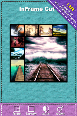 Mit InFrame Cut (App Store-Link) können im Handumdrehen kleine Collagen erstellt werden. Dazu sind einige Schritte nötig, die nach und nach absolviert werden müssen. Direkt zu Anfang muss man sich für ein Bildformat entscheiden und kann mit einem Fingerwisch, die zu erstellende Collage in verschiedene Abschnitte unterteilen, wo nachher die Bilder Platz finden.
