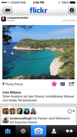 Einer der Gründe war, auch von meinen iDevices aus geschossene oder bearbeitete Fotos direkt bei Flickr hochladen zu können, viele Apps bieten bereits eine Integration für diesen Bilderdienst im Internet. Möchte man allerdings vollständigen Zugriff auf die Flickr-Funktionen haben, bietet sich eigentlich der Download der offiziellen Flickr-App an. Eigentlich. Denn diese wird nicht zu Unrecht im App Store nur sehr durchwachsen bewertet und arbeitet nicht wirklich zuverlässig.