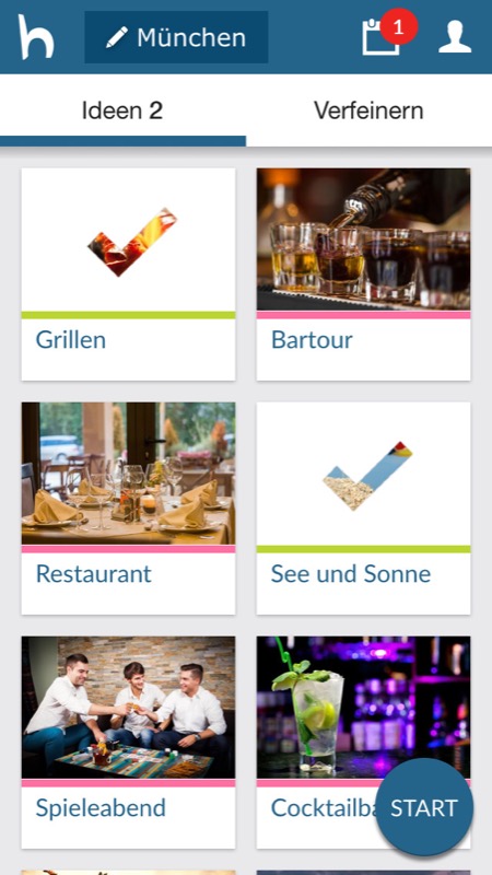 Die Angebote werden im Umkreis des jeweiligen iPhone-Standortes mit Abbildungen, Kurzbeschreibungen und Kontaktdaten dargestellt. Sie können nach den Rubriken Familie, Sport und Freizeit gefiltert und der Suchradius kann verändert werden. Beliebte Ziele lassen sich überdies als Favoriten abspeichern oder per E-Mail, Twitter und Facebook mit Freunden teilen. Die Eingabe einer Postleitzahl ermöglicht die Suche an anderen Orten, beispielsweise als Hilfe für die Urlaubsplanung.