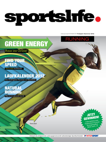 Die schon vorhandenen Ausgaben zum Thema Fußball, Handball, Snowbaord und Twintips stehen natürlich weiterhin zur Verfügung. Ab sofort kann eine weitere Ausgabe heruntergeladen werden: Running 2012. Der Titel der aktuellen Ausgabe lautet „Sind wir nicht alle ein bisschen Bolt?“ und bezieht sich natürlich auf den Sprintstar Usain Bolt.