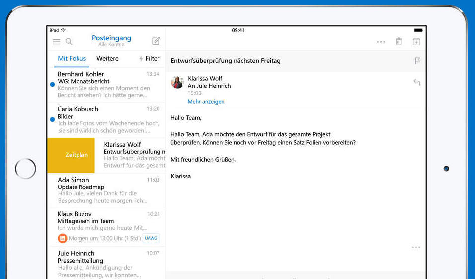 Microsoft Outlook für das iPhone kann kostenlos aus dem deutschen App Store heruntergeladen werden und benötigt zur Installation neben rund 358 MB an freiem Speicherplatz auch mindestens iOS 17.0 oder neuer auf dem Gerät. Alle Inhalte stehen in deutscher Sprache bereit. Seit 2022 blendet Microsoft für Gratis-User der App immer wieder Werbung ein, die aussieht wie eine neue E-Mail. Wer diese abschalten möchte, muss ein Microsoft 365-Abonnement abschließen. Von den Nutzern und Nutzerinnen gibt es im App Store durchschnittlich 4,6 Sterne für die mobile App.