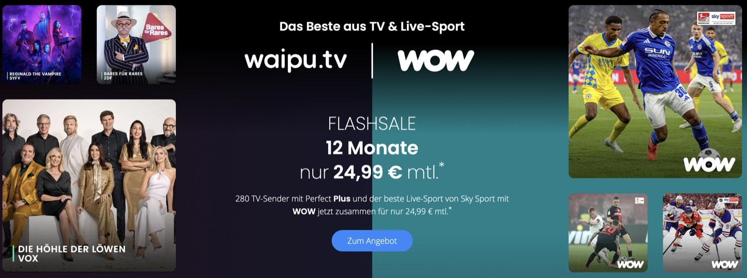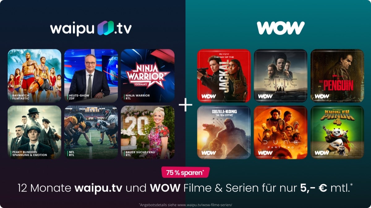 Waipu.tv im Bundle mit WOW Filme & Serien für 5,99 Euro Mehr Entertainment ist kaum möglich