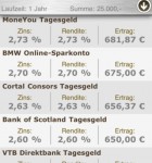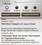 Wer sich fragt, wohin er mit seinem ganzen Geld soll, könnte sich für ein Tagesgeldkonto interessieren. Hier gibt es natürlich auch eine App.
