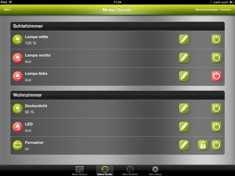 Die tapHome-App unterscheidet sich vom Aufbau zwischen iPad und iPhone. Auf dem iPad hat man mehr Optionen und Möglichkeiten, da das Display im Vergleich einfach größer ist. So lassen sie auf dem iPad auch Räume definieren und die Steckdosen in dem Raum einzeichnen. Mit den Komfort-Funktionen kann man unter anderem Lichtszenen definieren oder auch Zeitprogramme hinterlegen. Die Speicherung der Programme erfolgt im EASYGate und ist somit unabhängig von iPad oder iPhone. Außerdem kann man die Steckdosen nicht nur über die App steuern, sondern auch manuell an der Steckdose selbst einschalten. Das lässt sich allerdings auf Wunsch in der App deaktivieren.