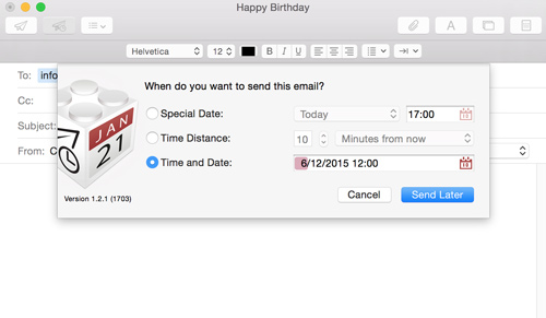 E-Mails planen ist mit den meisten Programmen nicht möglich. Mit SendLater gibt es eine Erweiterung für das Mail-Programm, mit dem sich Mails planen lassen.