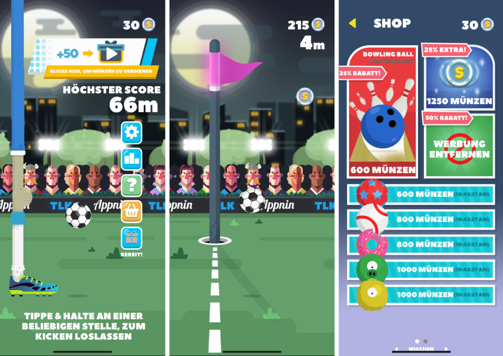 „Schnelles Denken und blitzschnelle Reaktionen sind gefragt, um die Distanz im längsten Kick zu erreichen“, so die Aussage der Entwickler von The Longest Kick, Appnin. „Aktiviere die grünen und gelben Flaggen, um deinen Schwung zu erhöhen und den Ball so weit wie möglich zu halten. Achte darauf, dass du die blauen Flaggen nicht aktivierst, da dies die Dinge viel schwieriger macht, während das Aktivieren einer roten Flagge bedeutet, dass das Spiel sofort beendet ist.“