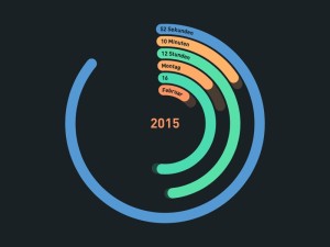 Wie bei einer richtigen Uhr bewegen sich die einzelnen Stränge des Kreises je nach Fortschritt im Uhrzeigersinn: Der äußere Strang für die Sekunden ist praktisch immer in Bewegung und kommt in jeder Minute mit einem tollen, langsamen Farbwechsel von orange, über gelb, grün und blau daher. Das gleiche gilt selbstverständlich auch für die anderen Stränge des Kreises, nur eben dementsprechend langsamer.