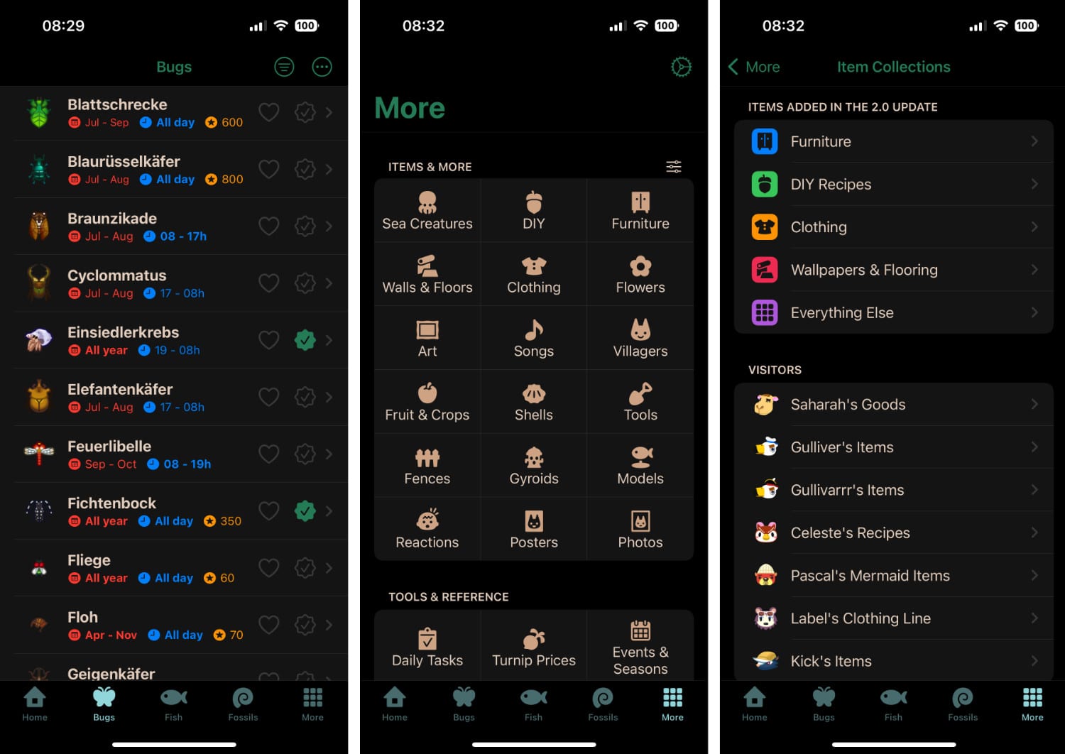 Vor allem die informativen Listen zu sammelnder Insekten, Fische und Fossilien sind extrem praktisch und erlauben es einem, bereits gefangene Arten abzuhaken, ihre Verkaufspreise, Vorkommen, die Region und ihr jahreszeitliches Erscheinen sowie die damit zusammenhängende Tageszeit einzusehen. Wer schon einmal Animal Crossing: New Horizons gespielt hat, wird schnell merken, wie hilfreich die Auflistung in der App ist.