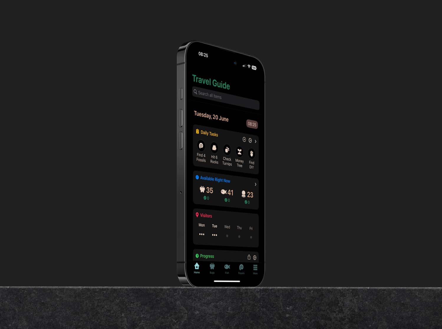 „ACNH Travel Guide ist die ultimative Begleit-App für Animal Crossing: New Horizons. Es bietet dir alle Informationen, die du während des Spiels benötigst, und lässt dich auch deinen Fortschritt verfolgen. […] Der ACNH Travel Guide enthält Käfer, Fische, DIY-Rezepte, Möbel, Kleidung, Fossilien, Meerestiere, Blumen, Dorfbewohner, Tapeten und Bodenbeläge, Kunst, Lieder, Muscheln, Werkzeuge, Reaktionen, Ereignisse und sogar Früchte. Du kannst die App auch verwenden, um deine täglichen Aufgaben, Rübenpreise und Besucher im Auge zu behalten. Die App ist sehr einfach und schnell zu bedienen und kommt ohne Werbung, ohne gesperrte Funktionen und ohne Abonnements aus.“