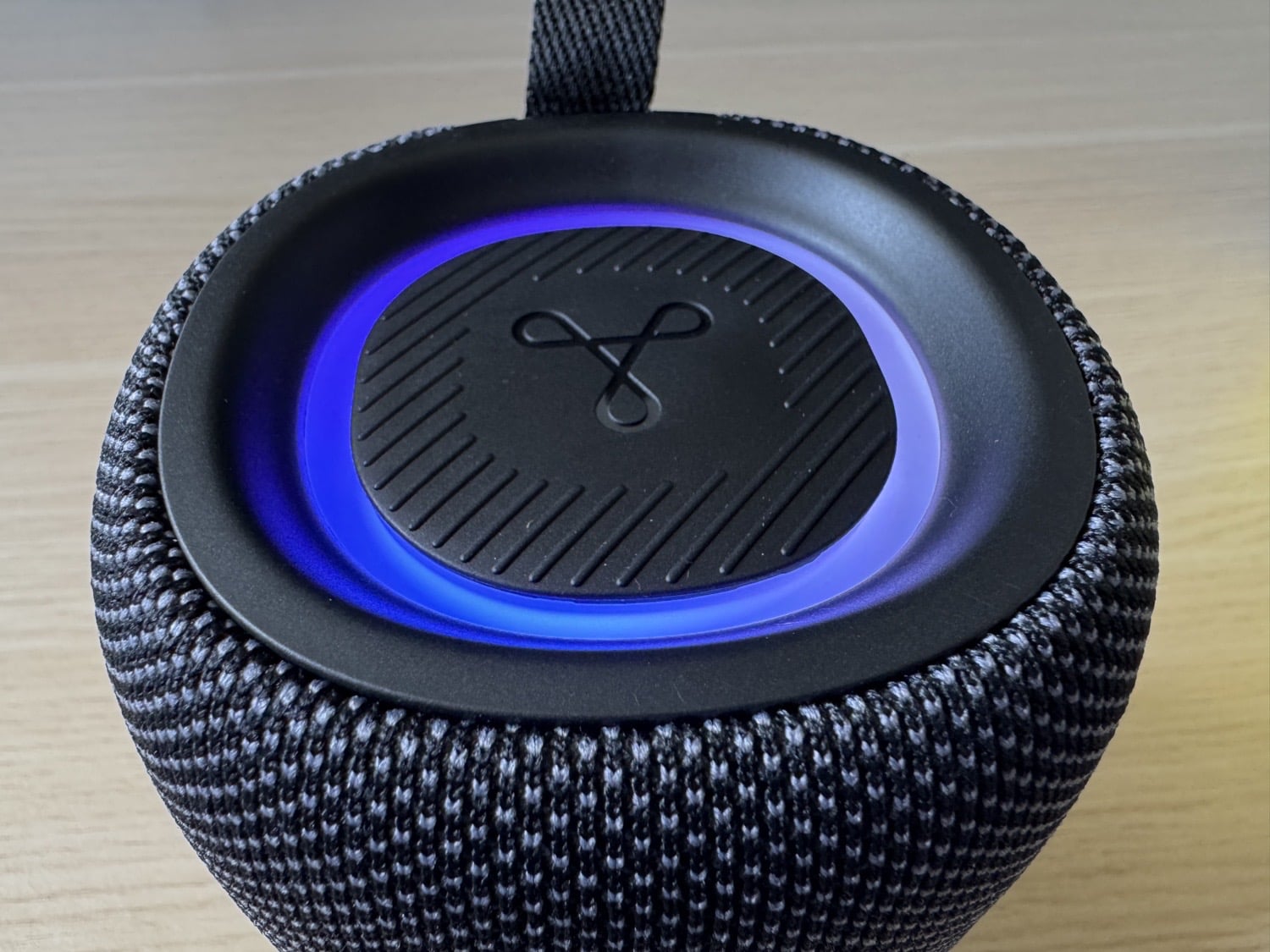 Als kleines Gimmick hat Tribit dem StormBox Mini+ auch noch einen RGB-Leuchtring auf der Oberseite spendiert, der in vielen verschiedenen Farben passend zur Musik pulsiert. Bei Bedarf lässt sich das RGB-Licht über einen Button auf der Rückseite des Geräts ausschalten, um so beispielsweise eine längere Akkulaufzeit zu haben. Ebenfalls praktisch sind die drei großen Buttons auf der Vorderseite, mit denen sich die Audioinhalte steuern lassen. Ein integriertes Mikrofon sorgt darüber hinaus dafür, dass auch Anrufe freihändig entgegengenommen werden und über den Bluetooth-Lautsprecher geführt werden können.