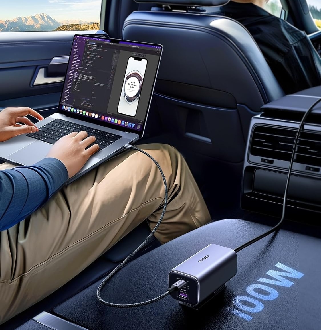 Seit August könnt ihr mit dem Auto-Ladegerät von Ugreen iPhone, iPad und Mac mit Strom versorgen. Der Anschluss erfolgt am Zigarettenanzünder und über das 1 Meter lange Kabel kann man das Ladegerät auch auf die Rückbank durchreichen. Mit 150 Watt Power Delivery liefert das Netzteil sehr viel Power und kann ein MacBook Pro zum Beispiel mit 140 Watt aufladen, wenn man das MagSafe-Ladekabel verwendet. Aktuell bekommt ihr das Ladegerät für 38,99 Euro statt 59,99 Euro.