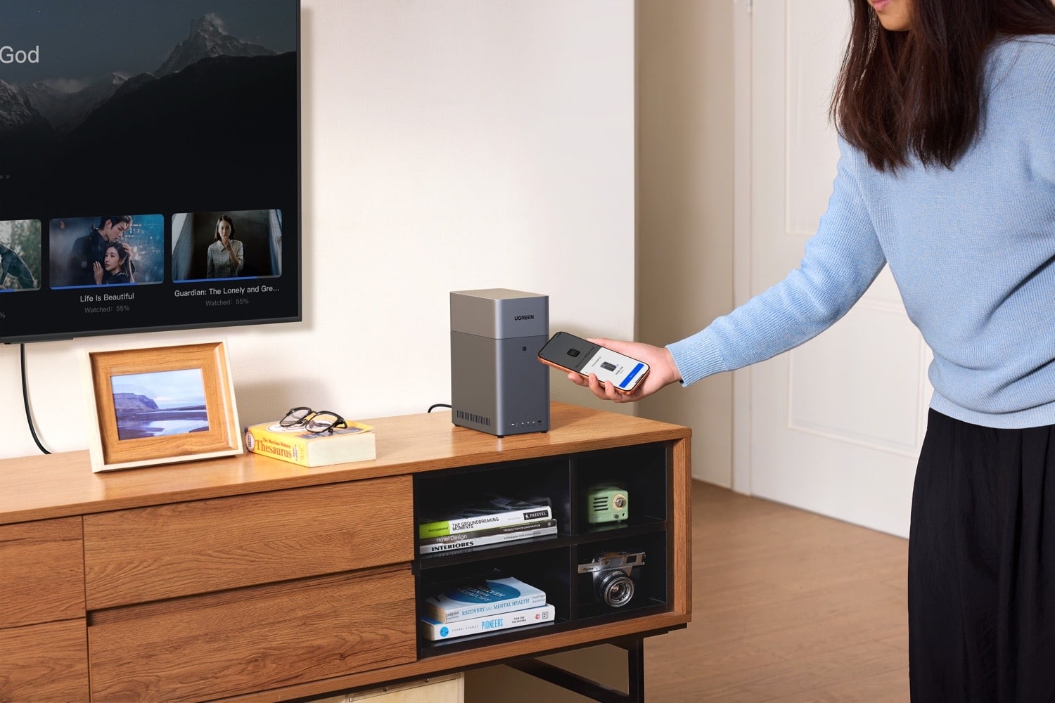 Die kostenlos für das iPhone, iPad und das Apple TV erhältliche All-in-One-App Ugreen NAS (App Store-Link) integriert Dateiverwaltung, automatische Fotosicherung und Medien-Streaming auf dem Fernseher über eine einzige Schnittstelle, so dass nicht mehrere Apps erforderlich sind. Eine schnelle NFC-Verbindung vereinfacht den Zugriff zusätzlich, indem Nutzer und Nutzerinnen ihr Smartphone mit nur einem Fingertipp verbinden können.