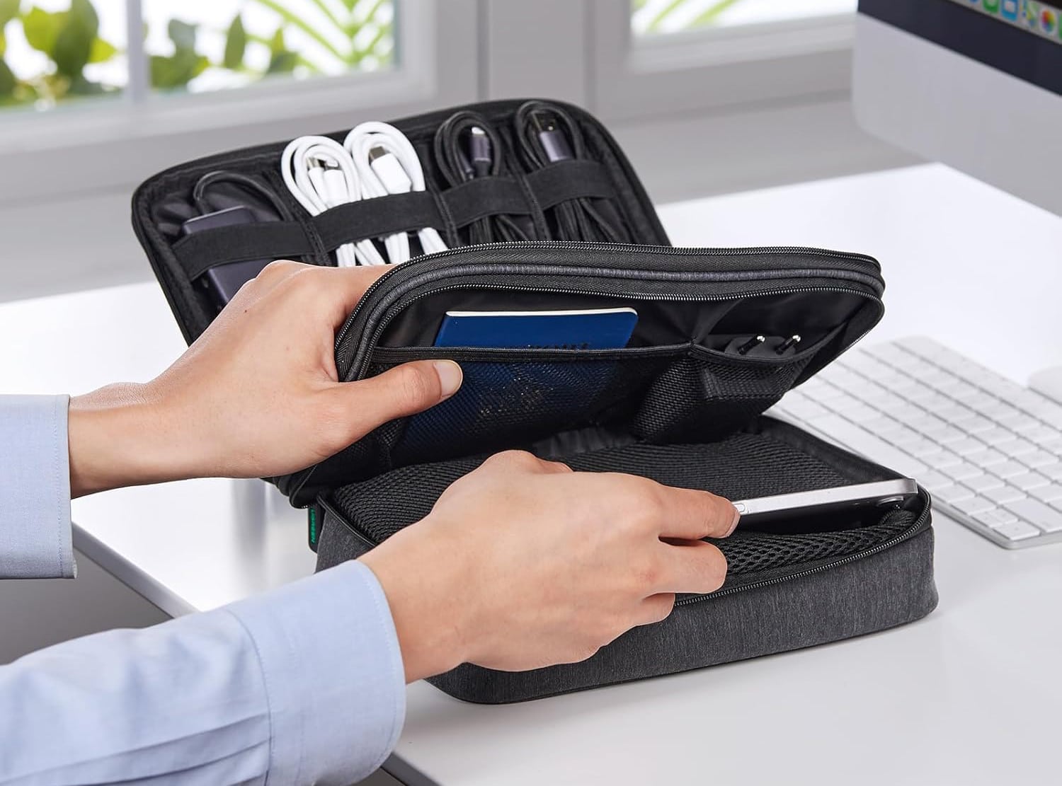 Der Ugreen Tech Organizer L ist genial. Ich nutze diesen für alle Kabel, Adapter, Watch Bänder usw. Es ist schon fast ein kleiner Koffer. Die Qualität ist ausgezeichnet. Ach ja, auch eine mobile Festplatte oder eine Powerbank passen da natürlich rein. 😉