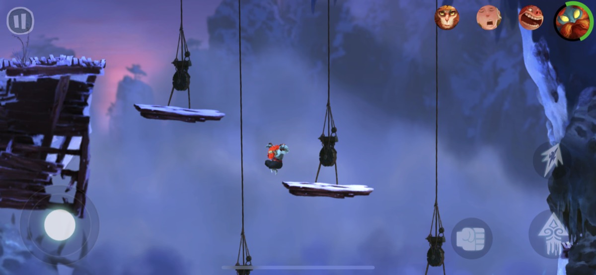 Jeder der vier Helden hat ganz unterschiedliche Fähigkeiten, die ihr im Spiel Nutzen müsst. So kann einer der Helden beispielsweise besonders hoch springen, ein anderer schweben und der nächste ist besonders stark. Die Steuerung ist aber immer gleich: Mit dem linken Daumen bewegt man einen Joystick, mit dem rechten Daumen tippt man auf die Aktionstasten.