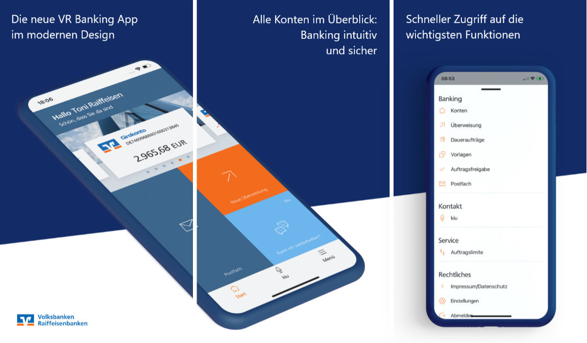 Viele Banken bekleckern sich nicht gerade mit Ruhm, wenn es um den mobilen Auftritt geht. Erst vor ein paar Wochen hat die DKB eine neue und moderne App vorgestellt, die funktional aber noch nicht an die alte und träge App herankommt. Die neue App „VR Banking – Deine mobile Bank“ (App Store-Link) liefert wohl zum Start ein paar mehr Funktionen aus. Da ich kein Kunde bei den VR-Banken bin, konnte ich die App selbst nicht ausprobieren.