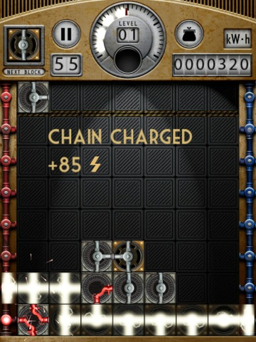 Wenn es eine Verbindung von links nach rechts gibt, hat man einen Stromkreis erschaffen, der Punkte in Kilowattstunden bringt. Danach lösen sich die Steine auf. Im Modus „Block-Limit“ stehen maximal 56 Blöcke zur Verfügung, mit denen man einen möglichst hohen Highscore erzielen sollte.