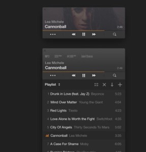 Im Vergleich zur Vorgänger-Version sticht vor allem das flache Design ins Auge, das schon ein wenig an iOS 7 angelehnt ist – aber dennoch nicht farblos wirkt. Richtig klasse finden wir den neuen Kopfbereich in VOX: Anstatt das Album-Cover in einer kleinen Ecke anzuzeigen, wird es ab sofort als transparenter Hintergrund gesetzt, wenn man den Mini-Player verwendet.