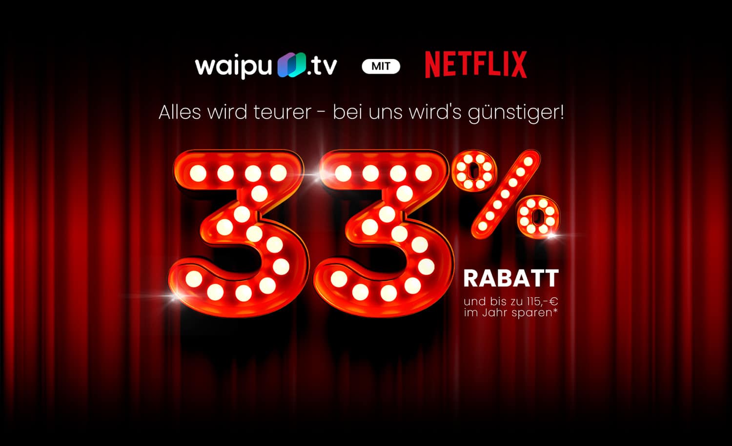 Ihr wollt auf das klassische TV-Programm nicht verzichten, aber gleichzeitig auch tolle Filme und Serien bei Netflix streamen? Dann kommt dieses Angebot genau richtig. Ihr könnt euch nämlich bis zum 7. März 2022 das Paket bestehend aus waipu.tv und Netflix günstiger sichern.