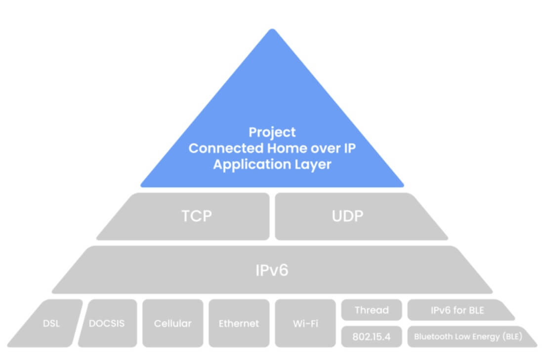 Und genau hier kommt dann das Thema Connected Home over IP ins Spiel. Das ist der Standard, der am Ende alle Hersteller vereinen soll. Thread ist dabei nur einer von vielen kleinen Bausteinen, wie ihr im folgenden Diagramm sehr gut sehen könnt.