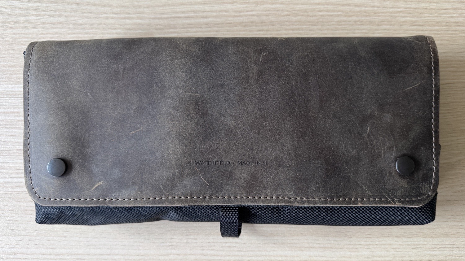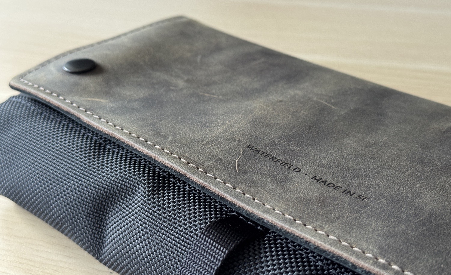 Ich habe mich in diesem Fall für die Variante aus ballistischem Nylon mit schokobrauner Lederklappe entschieden, da mein persönlicher Favorit mit blauer Lederklappe leider nicht angeboten wird. Alternativ gibt es bei dieser Taschengeneration auch noch braunes gewachstes Segeltuch mit schokobraunem Leder, sowie schwarzes ballistisches Nylon mit weißem oder schwarzem Leder. Optional kann auch noch ein ca. 3 cm breiter schwarzer Schultergurt, der Sling Strap, mitbestellt werden, damit man die Tasche auch umhängen kann.