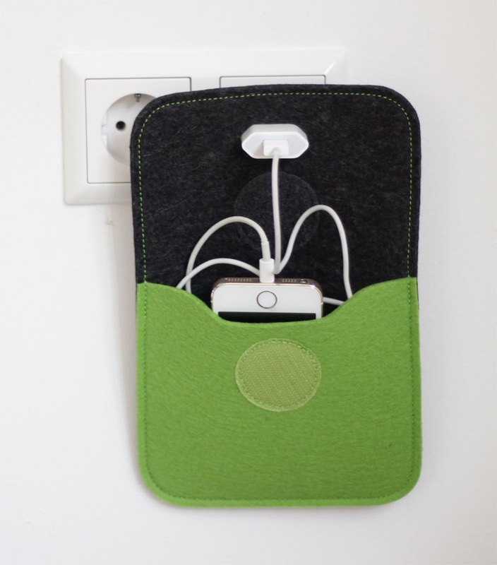 Das ist eine Tasche, die ich über den Ladestecker hänge.