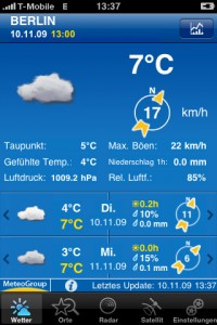 Bin mit dem Wetter in iOS 5 zufrieden; einfach Benachrichtigungszentrum „aufrufen“ und man hat das Wetter für die nächsten (7) Tage, außerdem eine Regenwahrscheinlichkeit bis zum nächsten Tag.