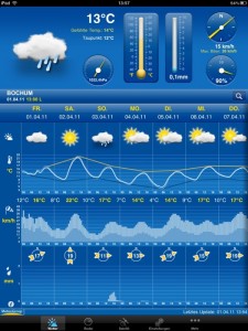 Auf dem iPad kommt man um das Tool ja kaum herum, nachdem Apple in iOS 5 auf dem Tablet erneut auf die Einbindung der Wetter-App verzichtet hat. Aber auch iPhone-Nutzer können profitieren, denn WeatherPro bietet eine Fülle an zusätzlichen Informationen.