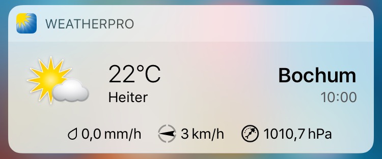 WeatherPro ist immer noch einzeln für iPhone und iPad erhältlich. Die Version für das iPhone kostet statt 2,99 nur noch 1,99 Euro, die iPad-Edition 2,99 statt 3,99 Euro. Die letzte Rabattaktion gab es im Dezember letzten Jahres. Ebenfalls positiv: Die Entwickler arbeiten stetig an neuen Funktionen. 3D Touch und eine Apple Watch Komplikation sind schon länger mit dabei, ab sofort ist die Applikation auch für iOS 10 optimiert und bietet ein neues Widget, das auch direkt via Quick-Action am App-Icon aufgerufen werden kann.