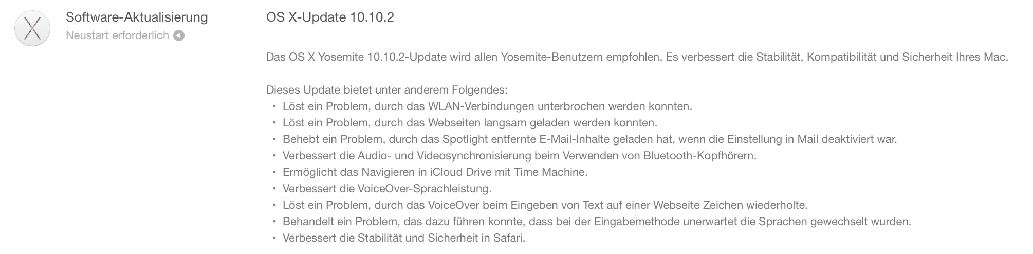 Auch OS X Yosemite wurde heute aktualisiert und liegt in Version 10.10.2 zum Download bereit.