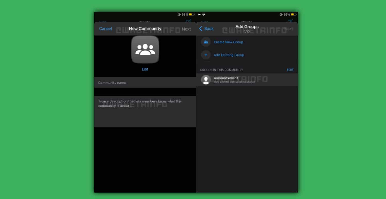 WABetaInfo teilte dazu auch entsprechende Screenshots mit einer Eingabemaske, in der sich Name und Beschreibung einer Community einpflegen lässt, „ganz genauso wie in einem gewöhnlichen Gruppenchat“. Nach der Eingabe dieser Infos würden User „in der Lage sein, bis zu 10 Gruppen in der Community zu verlinken“.