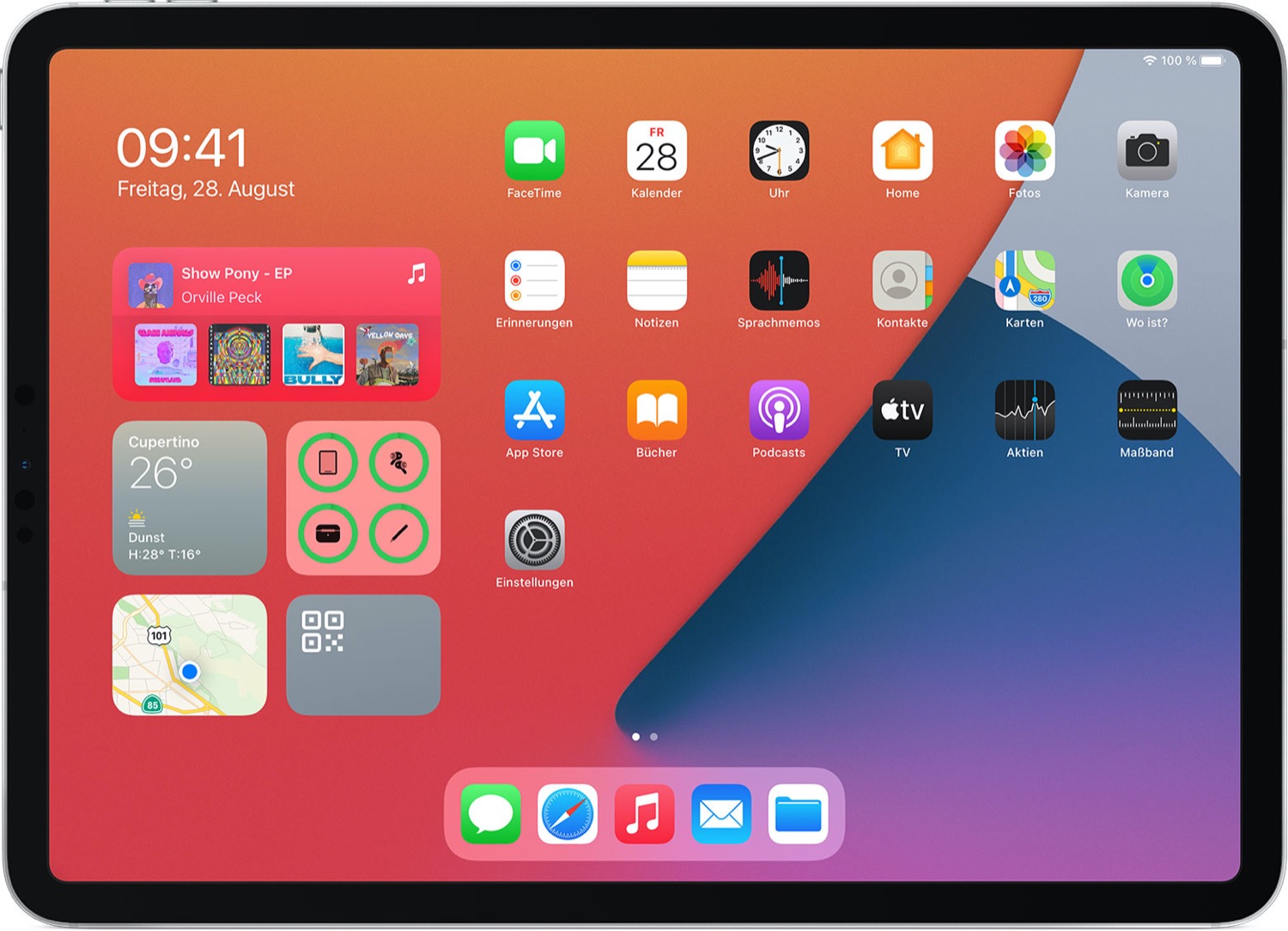 An dieser Stelle möchte ich ein paar Worte über „Widgets auf dem iPad“ verlieren. Während man auf dem iPhone die Widgets halbwegs frei auf dem Homescreen platzieren kann, lassen sich Widgets auf dem iPad weiterhin nur im Heute-Bereich einrichten. Auf dem Homescreen selbst können diese nicht angezeigt werden. Das ist wirklich schade, da hier aufgrund des größeren Displays sehr viel Potenzial verschenkt wird. Hoffentlich arbeitet Apple an einer optimierten Widget-Darstellung auf dem iPad und liefert diese mit einem späteren Update aus.