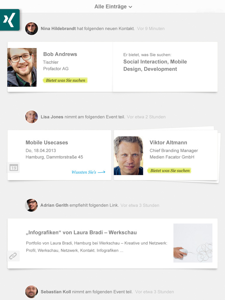 Wer Xing wirklich ernsthaft nutzt, für den ist die App völlig sinnlos. Zu verspielt, das UI ist … Seltsam und es fehlen die Gruppen – das grösste Manko.