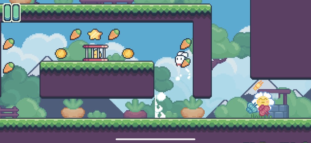 Die Besonderheit von Yeah Bunny 2 ist neben der tollen 8-bit Grafik vor allem die einfache Steuerung. Das Spiel wird mit nur einem Finger und ganz ohne virtuelle Buttons gesteuert. Mit einem Fingertipp auf das Display, egal wo, lässt man den automatisch laufenden Hasen in Yeah Bunny 2 springen – auf Wunsch auch doppelt.