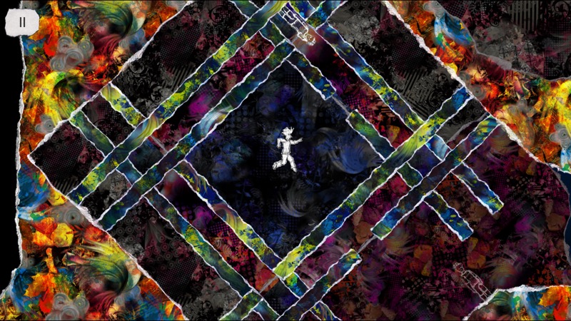 Die Steuerung von Yet It Moves wird in einem kleinen Tutorial erklärt und scheint zunächst nicht besonders zu sein: Mit einfachen Fingertipps auf die linke oder rechte Display-Hälfte lässt man die kleine Figur in die jeweilige Richtung laufen, mit einem weiteren Fingertipp kann man springen. Spannend wird es, wenn man den Finger auf dem Display gedrückt hält: Dann kann das komplette Level mit einer einfachen Wischgeste rotiert werden.