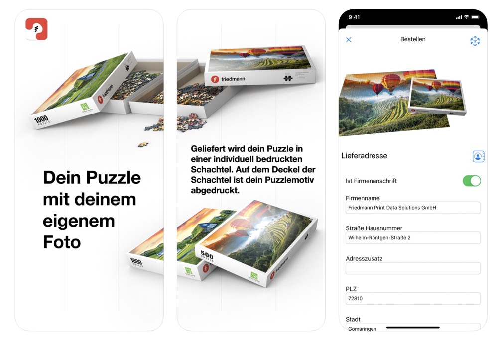 Zur Auswahl stehen in Your Real Photo-Puzzle zwei verschiedene Größen, entweder mit 500 oder 1.000 Teilen. Das Puzzle kann im Bestellvorgang auch per Augmented Reality visualisiert werden, um einen Eindruck für die Größe zu bekommen.