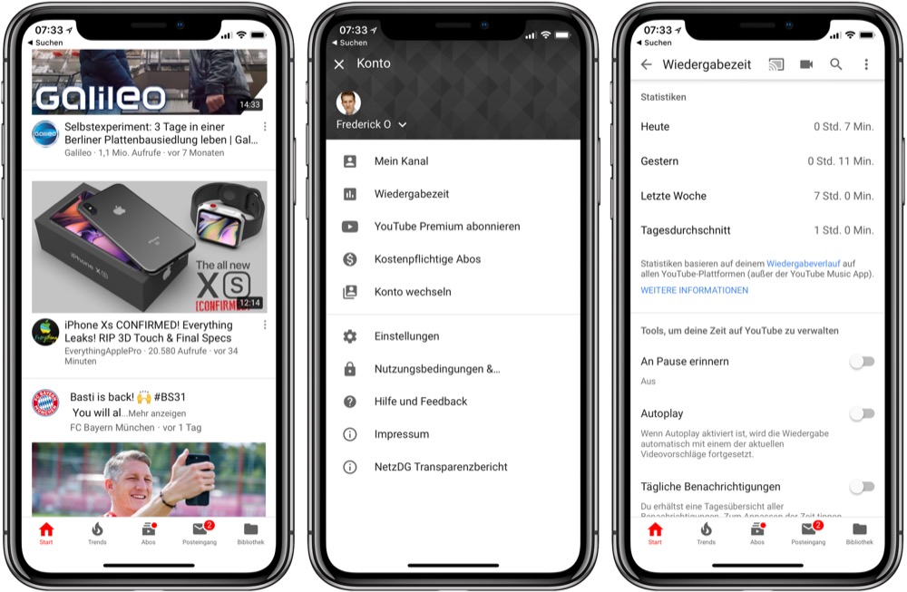 In iOS 12 wird es mit der Sektion „Bildschirmzeit“ eine Möglichkeit geben, um einzusehen, wie oft man sein iOS-Gerät verwendet und wie viel Zeit man in bestimmten Apps verbringt. YouTube (App Store-Link) hat jetzt mit Version 13.33 eine ähnliche Statistik integriert, die euch zeigt, wie lange ihr bei YouTube Videos angeschaut habt.