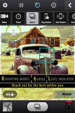 Damit die eigenen Fotos noch besser werden, kann man verschiedene Hilfsgitter anzeigen lassen. Des Weiteren gibt es eine digitale Wasserwaage, mit der man das iPhone immer waagerecht hält. Wer möchte kann natürlich auch schon bestehende Fotos bearbeiten und in sozialen Netzwerken wie Facebook oder Twitter teilen.